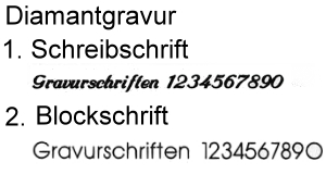 Nutzen Sie unseren Gravurservice und verleihen Sie Ihrem Schmuck eine persönliche Note. Wir bieten Ihnen zwei Garvurverfahren zur Auswahl. Diamantgravur, diese ist farblos und wird als Relief mit einem Diamanten in das Material eingeritzt oder eine Lasergravur in Materialfarbe. Bei Edelstahlschmuck ist eine Diamantgravur nur mit begrenzter Tiefe möglich. Es steht Ihnen dabei zwei Schriftarten zur Verfügung. Die Lieferzeit durch die Gravur verlängert sich je nach Artikellieferstatus um ca. 3-5 Werktage! Sie können auch eine selbsterstellte individuelle Bilddatei bzw. Grafik (jpg, gif, png oder bmp) für eine Gravur hochladen. Bitte beachten Sie, dass die Auflösung min. 300px beträgt. Sollten sich unsererseits Fragen zur Gravur oder Grafikgravur ergeben, werden wir uns vorab bei Ihnen melden. Für Fotogravuren muss die Materialoberfläsche glatt bzw. poliert sein, damit ein guter Kontrast entsteht.