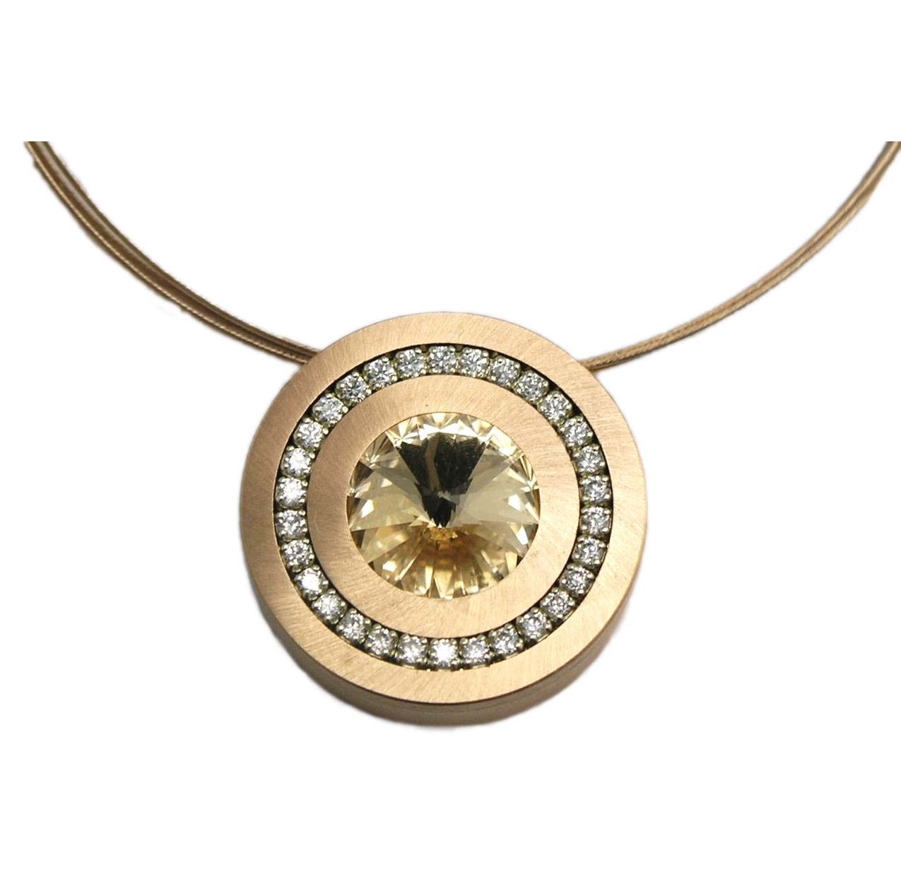 Anhänger Edelstahl rosévergoldet 22mm mit Kristall Elements nach Wahl
