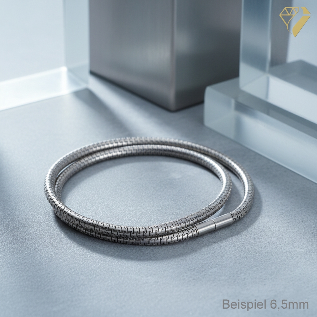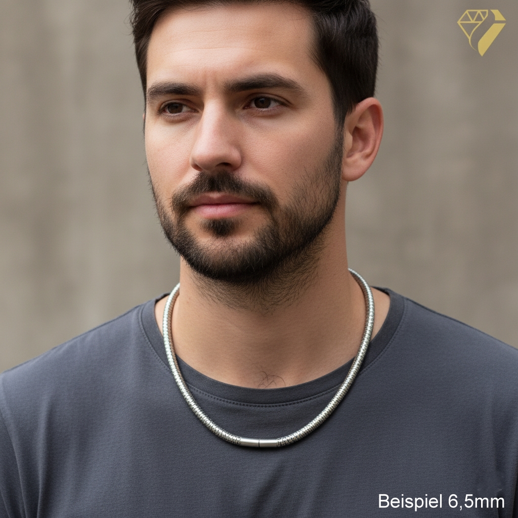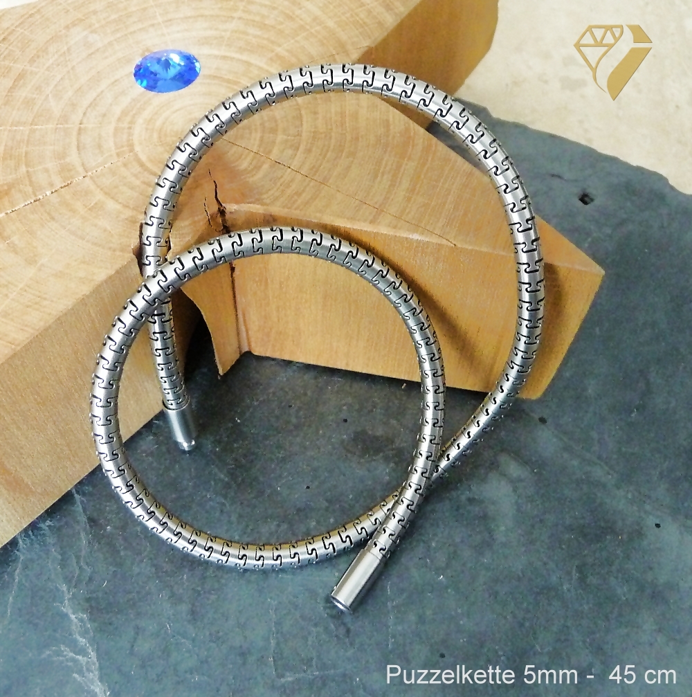 Suchen Sie nach einem Schmuckstück, das Stil, Stärke und Raffinesse vereint? Entdecken Sie unsere exklusive Edelstahlkette im innovativen Puzzle-Design! Das ineinandergreifende Gliederwerk im Puzzle Motiv erzeugt eine dynamische, schlauchförmige Struktur in 5 oder 6,5mm Stärke, die sofort ins Auge fällt. Der unauffällige und hochfunktionale Bajonettverschluss sorgt für maximalen Tragekomfort und Sicherheit. Er hält zuverlässig, ist leicht zu bedienen und fügt sich nahtlos in das Design ein. Gefertigt aus hochwertigem Edelstahl, ist diese Kette ein langlebiger Begleiter und erhältlich in den folgenden eleganten Finishes: