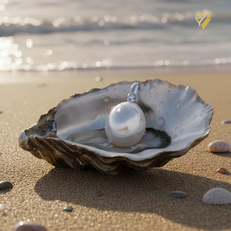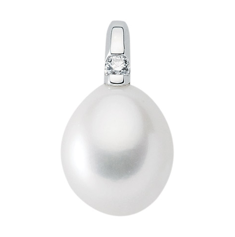 Anhänger Süßwasserperle oval 10,4x9,2mm mit Diamant 0,03ct 14Kt WEISSGOLD