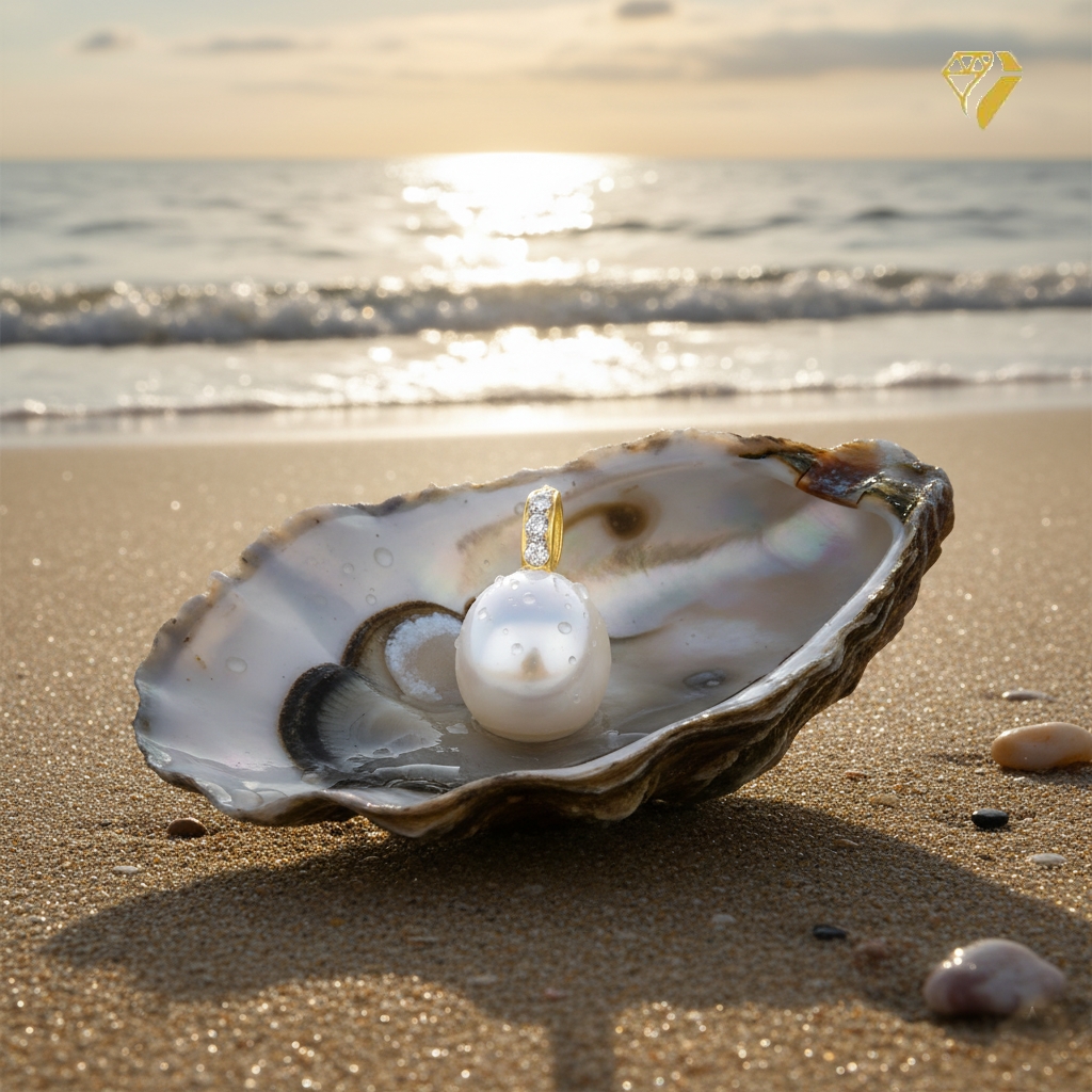 Anhänger Süßwasserperle oval 9,8x8,6mm mit Diamanten 0,06ct 14Kt GOLD