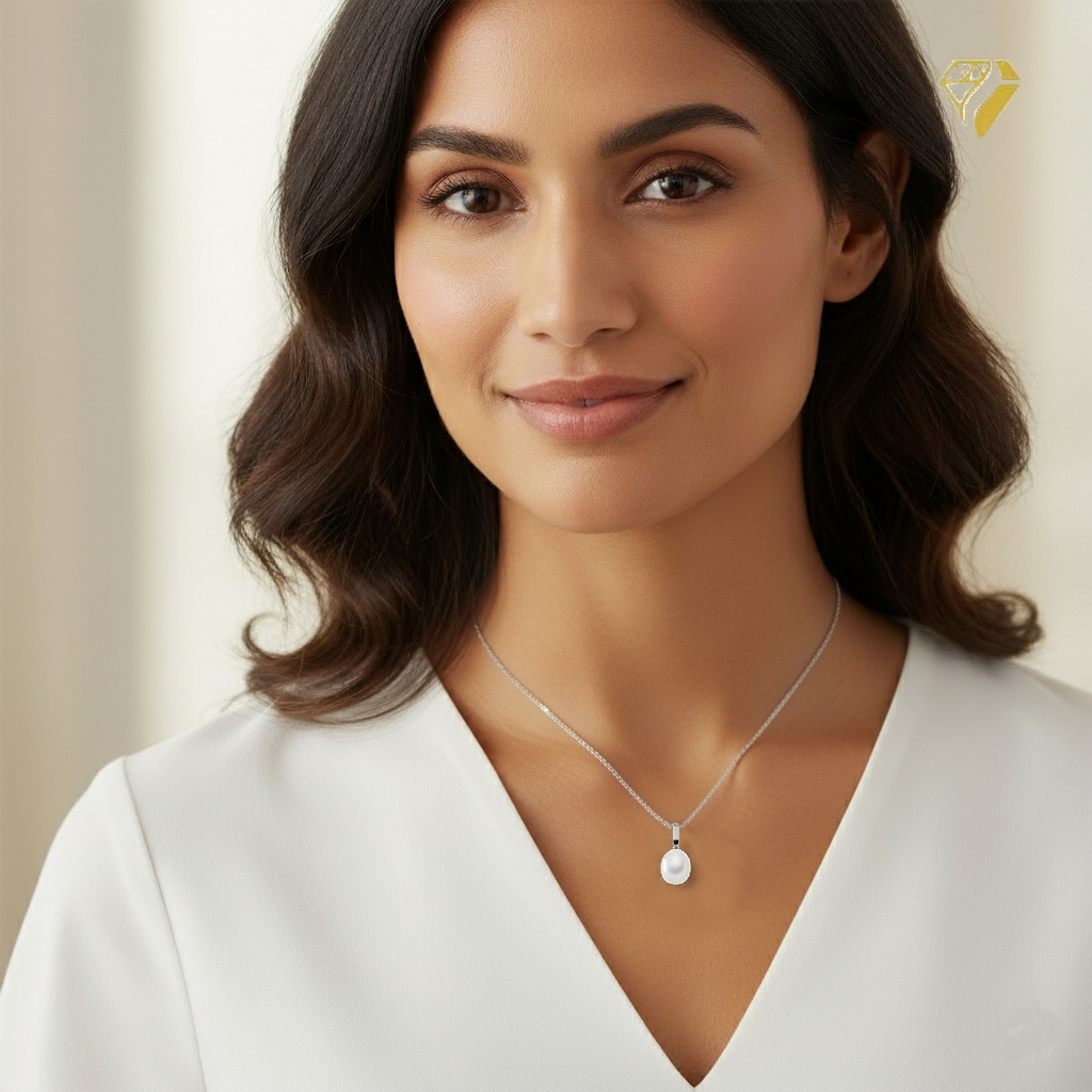 Einhänger Süßwasserperle oval 10,2x8,7mm 14Kt 585 WEISSGOLD