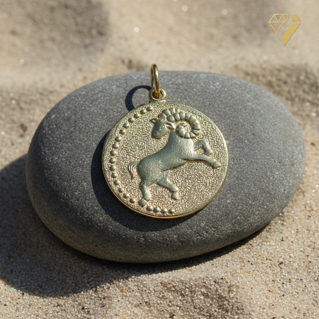 Anhänger Sternzeichen Widder Relief rund 18mm 8Kt 333 GOLD