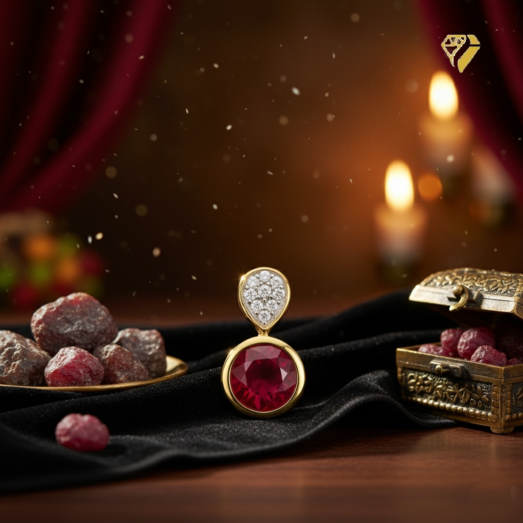 Anhänger 7mm Zirkonias Rubin Farbstein 8Kt 333 GOLD