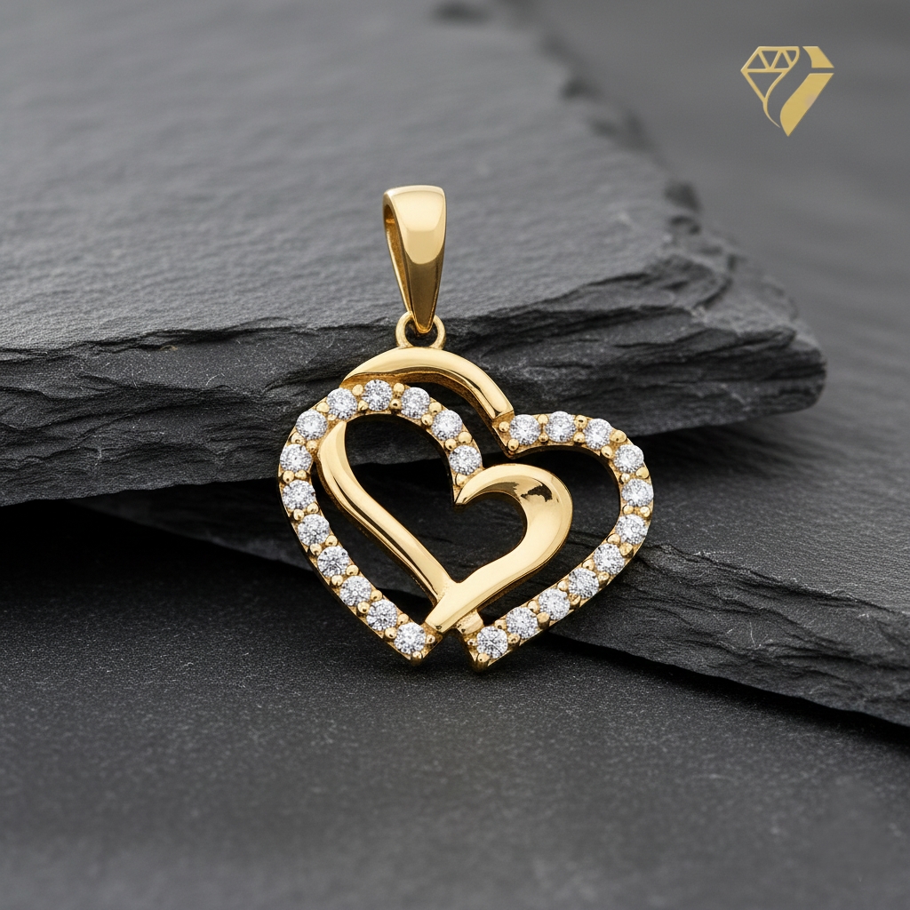 Anhänger 2 Herzen 12mm mit Zirkonia 8Kt 333 GOLD