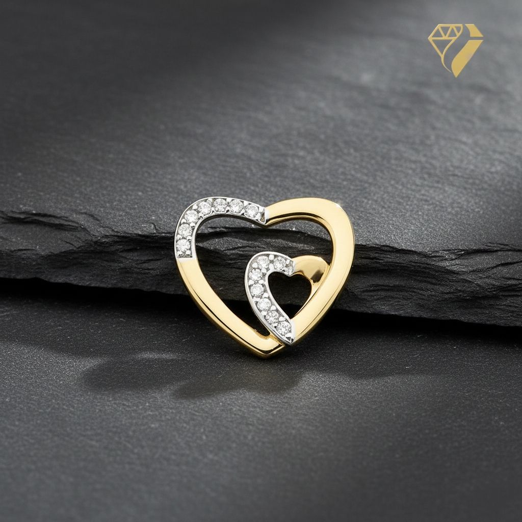 Anhänger 2 Herzen 14mm mit Zirkonia 8Kt 333 GOLD