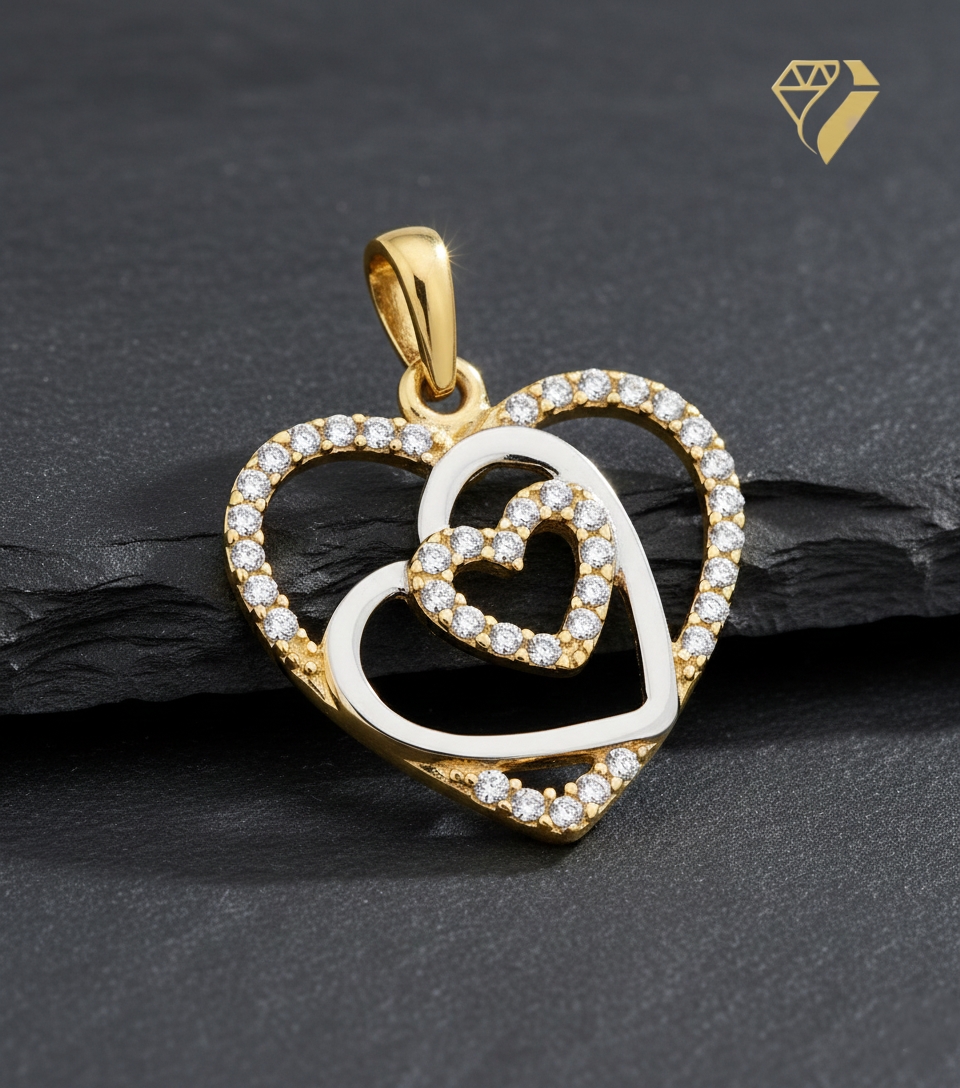 Anhänger 3 Herzen bicolor 16mm mit Zirkonia 8Kt 333 GOLD