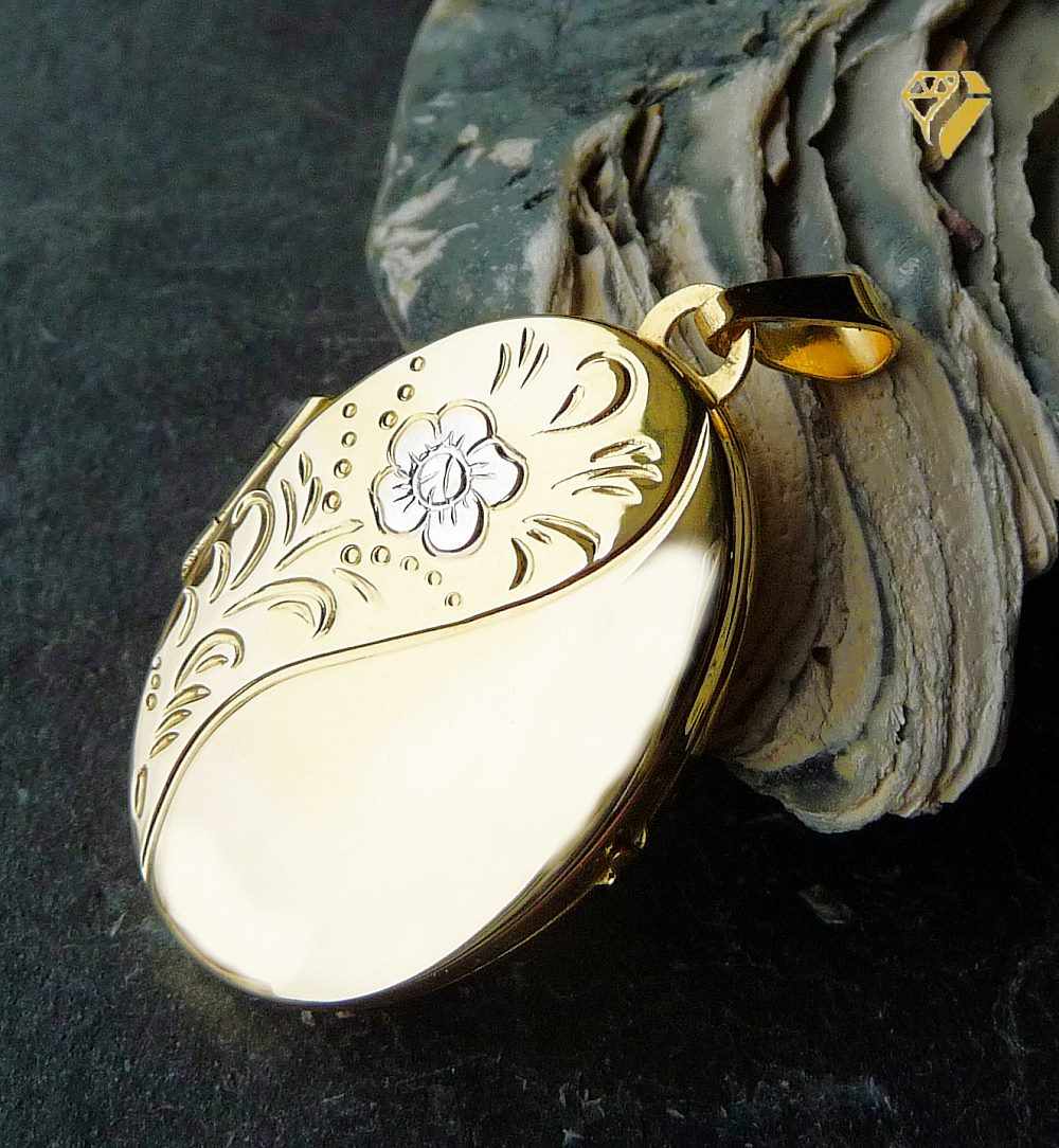 Medaillon oval Blumen 22x28mm 14Kt GOLD