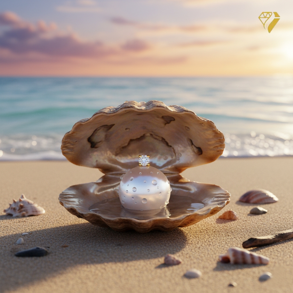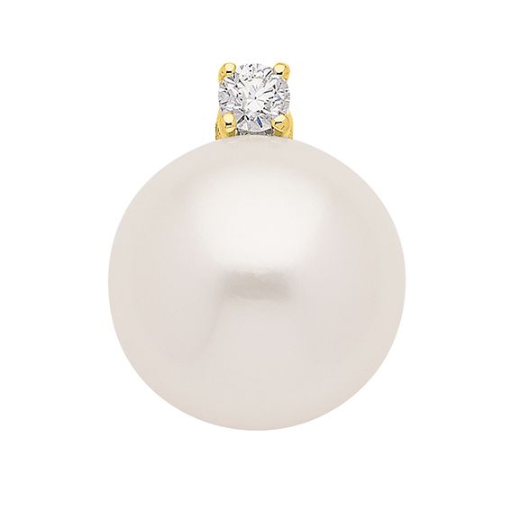 Anhänger Süßwasserzuchtperle 10mm mit Diamant 0,06ct 14Kt GOLD