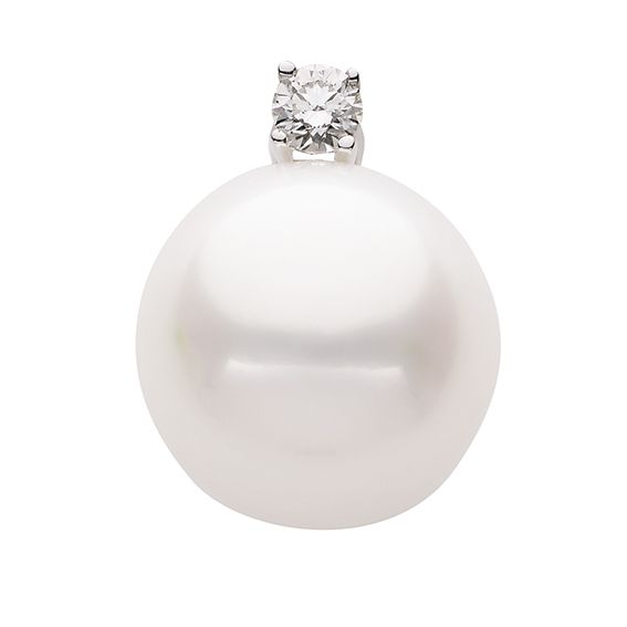 Anhänger Süßwasserzuchtperle 10mm mit Diamant 0,06ct 14Kt WEISSGOLD