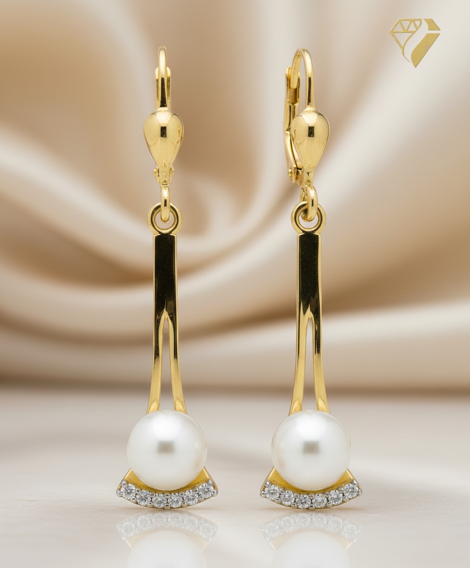 Brisur Ohrhänger Zirkonia Süßwasserzuchtperle 8Kt 333 GOLD