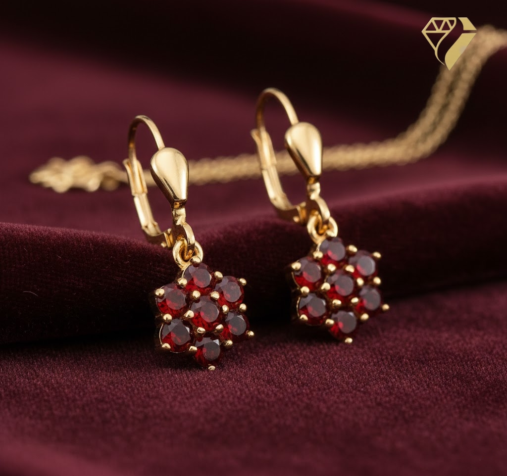 Ohrhänger mit Brisur Blüte Granat 333 Gold