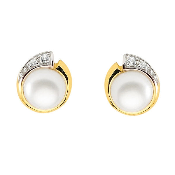Stecker 7,8mm Süßwasserperle und Zirkonia 14Kt 585 GOLD