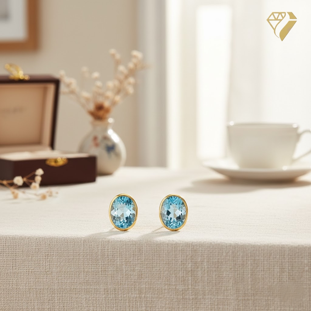 Ohrstecker Aquamarin 7x9mm oval 585 Gold