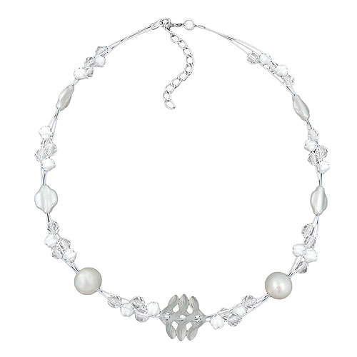 Kette Drahtkette Spiralperle weiß-matt weiß-transparent Kunststoffperlen 42cm