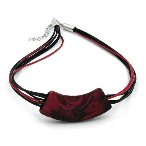 Kette 54x19mm Anhänger Rohr flach gebogen rot-metallic-marmoriert matt Kunststoff 45cm