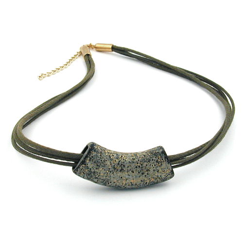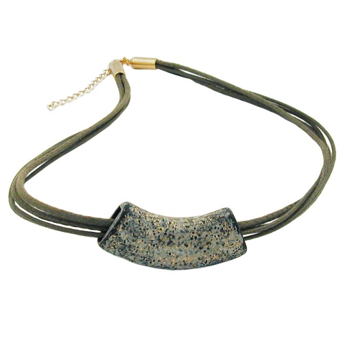 Kette 54x19mm Anhänger Rohr flach gebogen stein-oliv-gesprenkelt matt Kunststoff 45cm