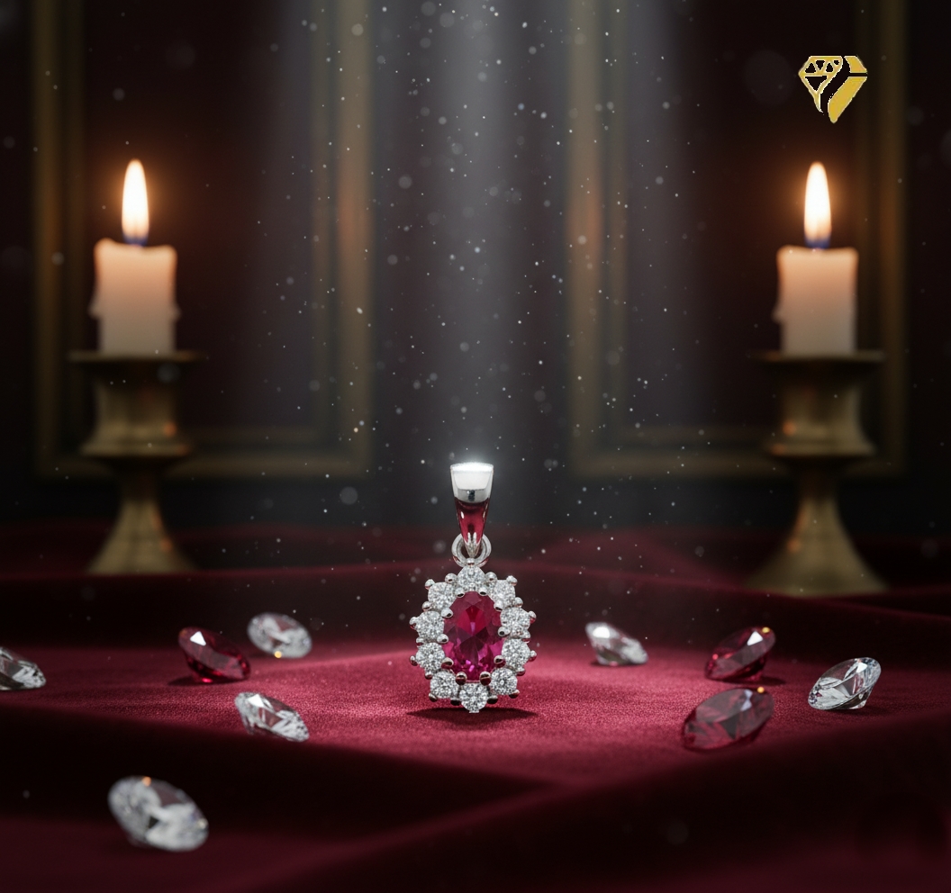 Anhänger 10x8mm oval Zirkonia rot weiss Silber 925