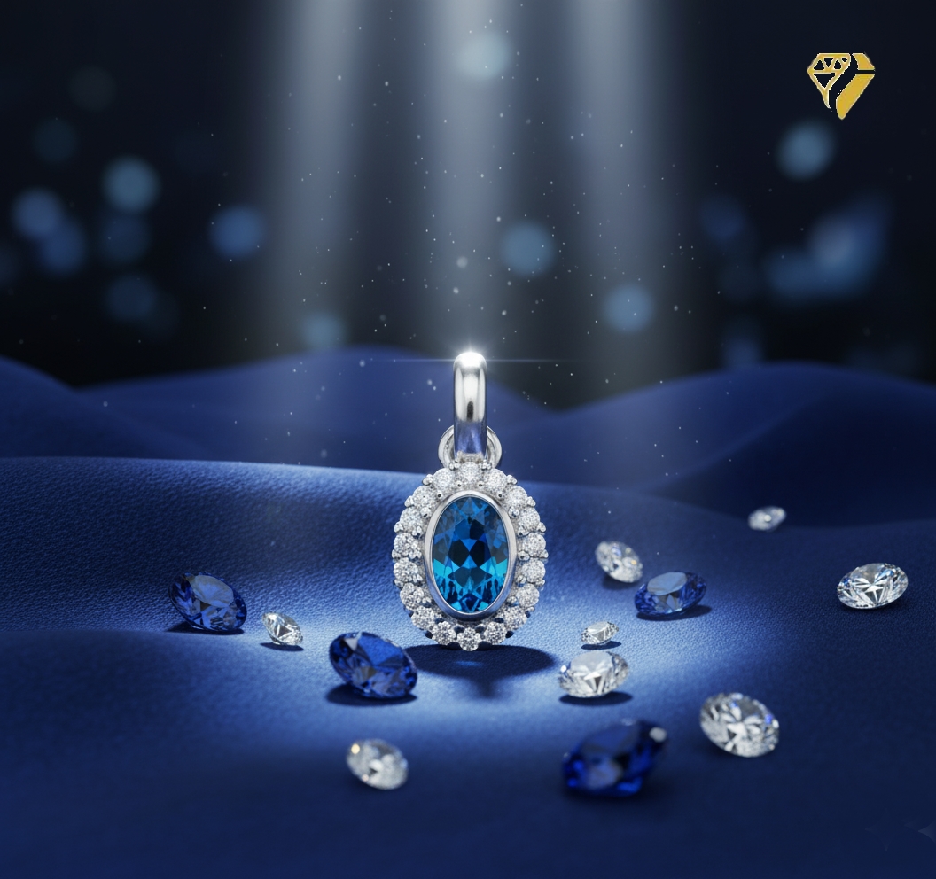 Anhänger 8x10mm oval Zirkonia blau weiss Silber 925