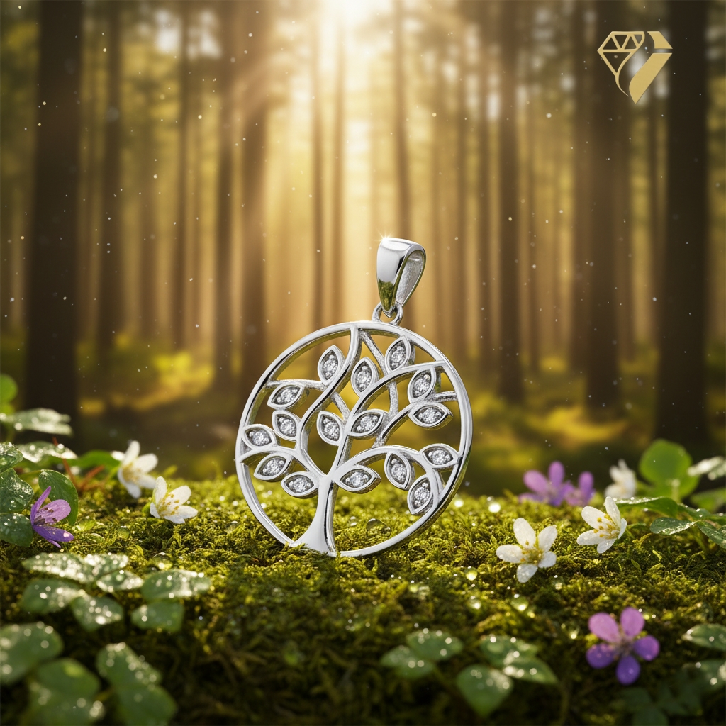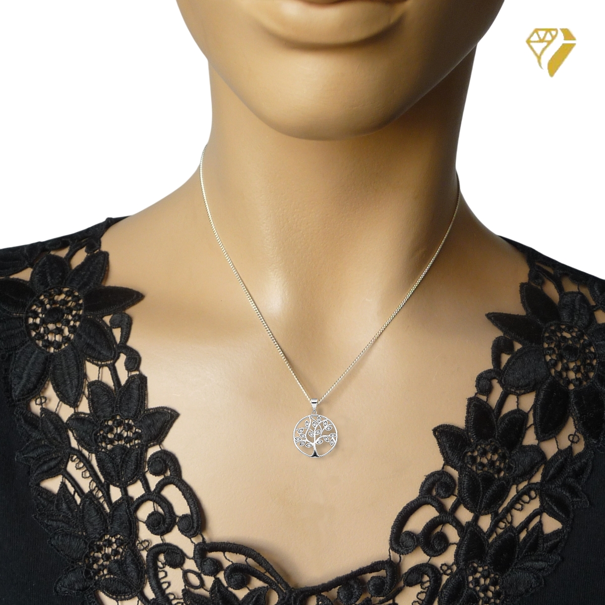 Anhänger 20mm Baum des Lebens mit Zirkonias poliert Silber 925