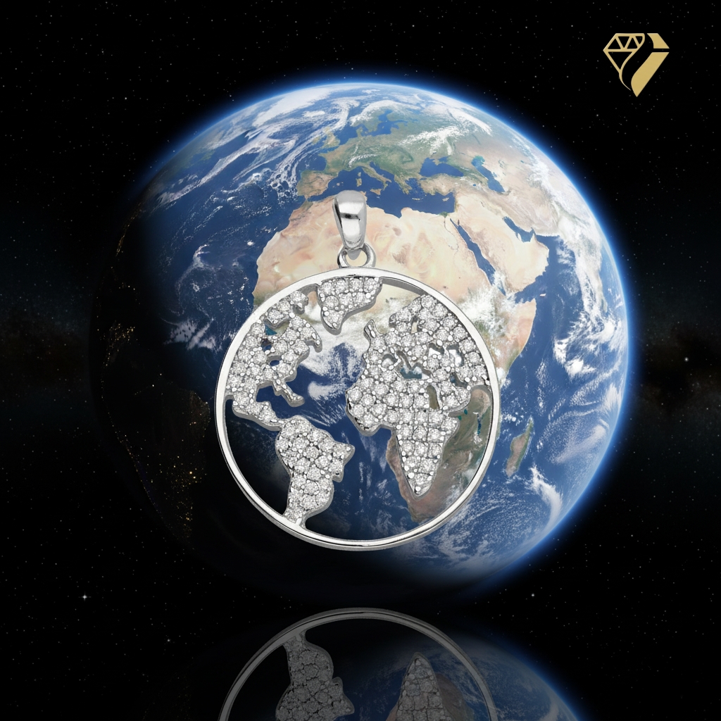 Anhänger Weltkarte 21,4mm Zirkonia 925 Silber