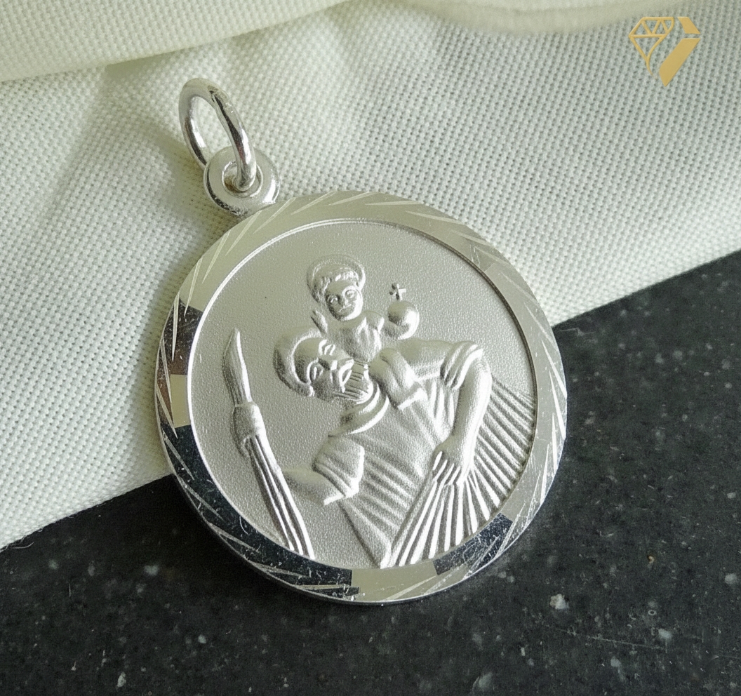 Anhänger Christophorus Rückseite mit Gravur "Gott schütze Dich" 16mm 925 Silber