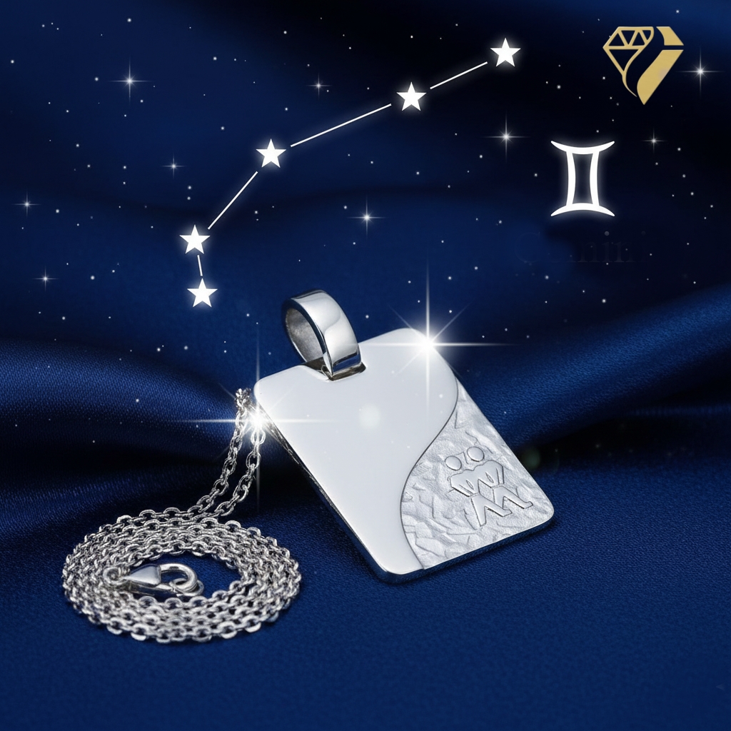 Anhänger Gravurplatte 13x18mm Sternzeichen Zwilling 925 Silber