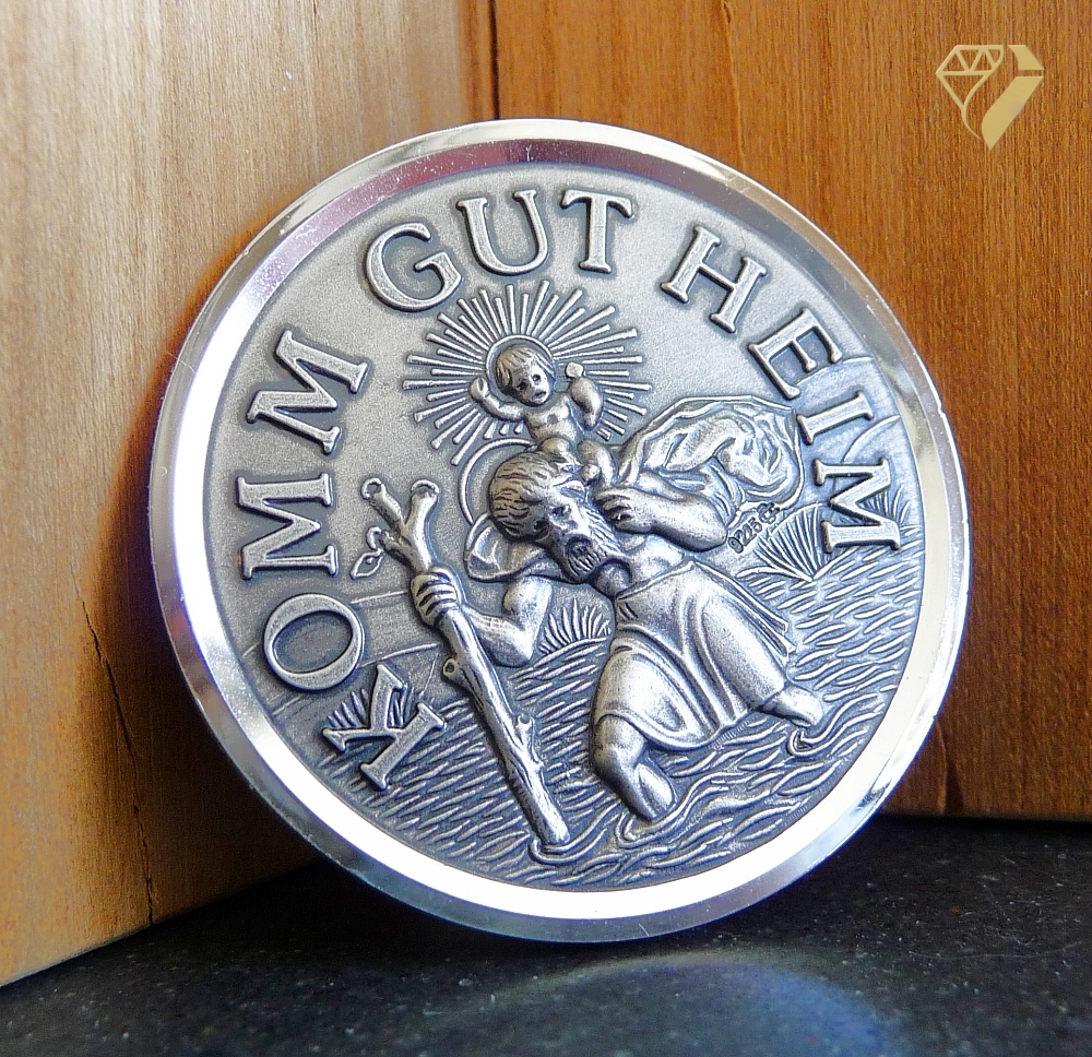 Autoplakette Christophorus - KOMM GUT HEIM - Silber 925