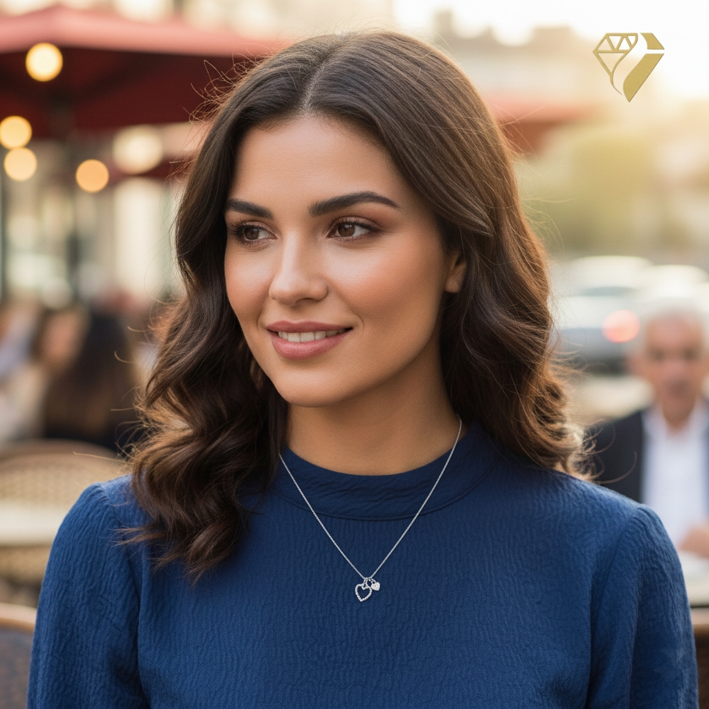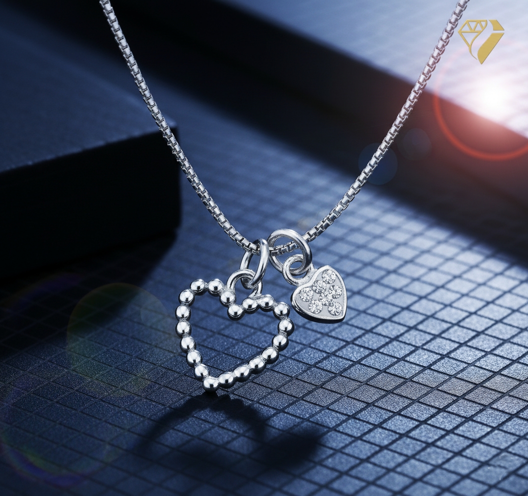 Kette und Anhänger 2 Herzen Zirkonia Silber 925 42cm+3cm