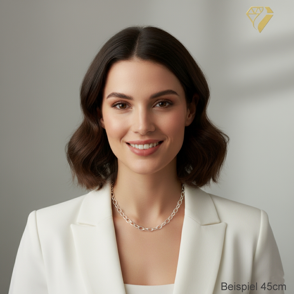 Kette Collier Anker oval rund 7,5mm Silber 925, vergoldet, rosé vergoldet 50cm